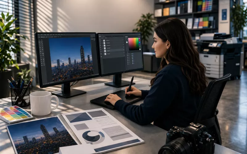 Nabízíme služby našich grafiků, kteří Vám pomohou při tvorbě jakéhokoliv firemního dokumentu (marketing, propagace, formuláře, design, aj….) ve velmi krátkém čase, buď přímo u Vás nebo v našem tiskovém centru.